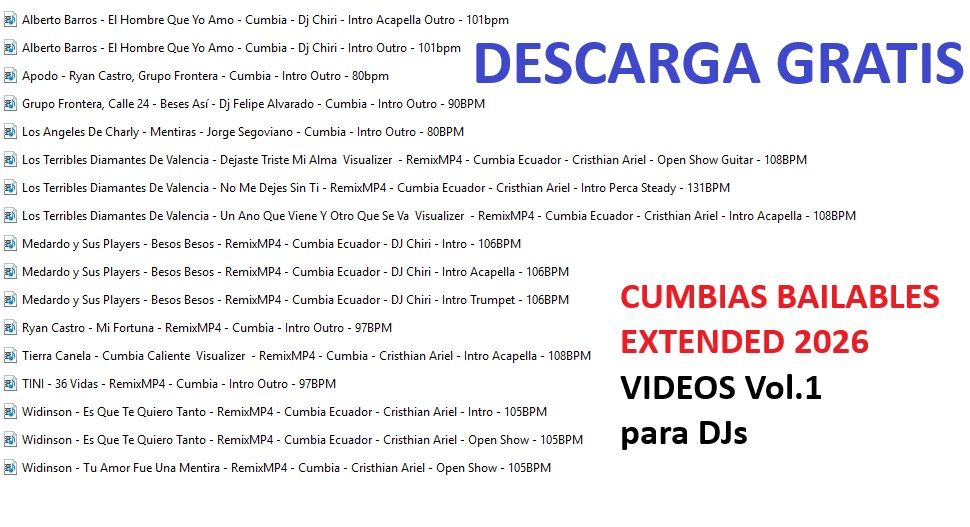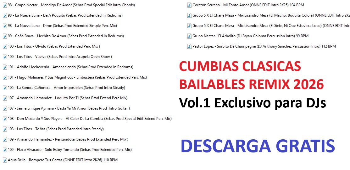 CUMBIAS CLASICAS BAILABLES EXTENDED 2026 – Vol.1 CUMBIAS CLASICAS BAILABLES EXTENDED 2026 – Vol.1 Leer más »