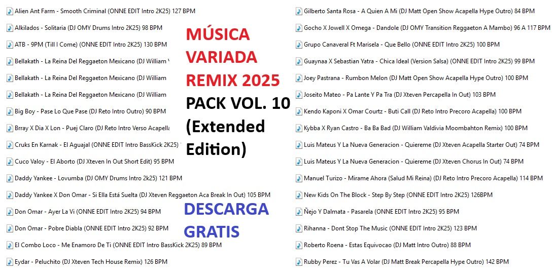 PACK DE MUSICA PARA DJ NOVIEMBRE 2025 – PARTE 1 PACK DE MUSICA PARA DJ NOVIEMBRE 2025 – PARTE 1 Leer más »