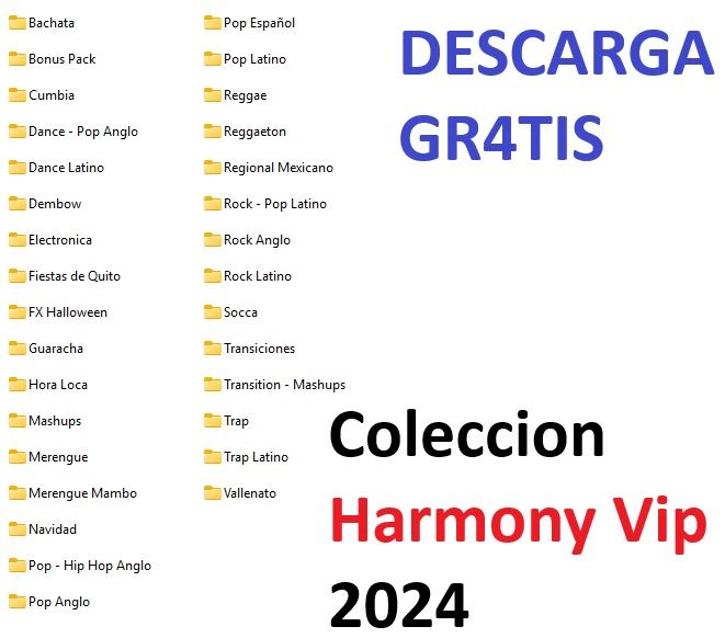 COLECCION HARMONY DJ MUSIC VIP 2024, en este pack encontraras los mejores remix para tus eventos.